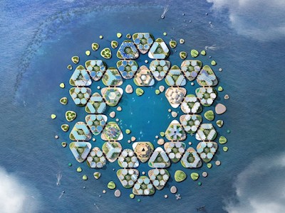 Last week, at a roundtable at the United Nations headquarters in New York, a Tahitian entrepreneur named Marc Collins unveiled a new model for a “sustainable floating city” designed in collaboration with the architecture firm Bjarke Ingels Group (BIG) and other partners. Called Oceanix City (after Collins’s company Oceanix), it would house up to 10,000 people and aim to be as self-sufficient as possible. Oceanix calls it a response to sea-level rise and climate displacement.